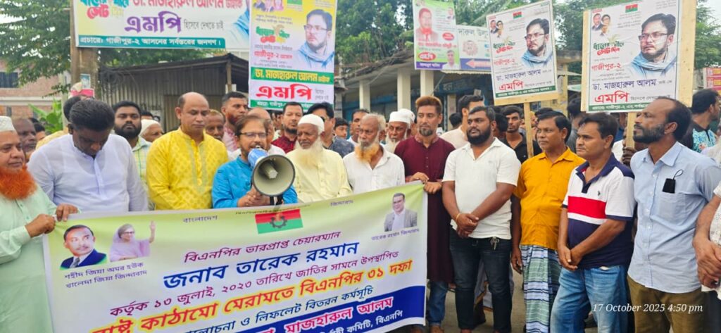 গাজীপুর মহানগরের ১৪ নম্বর ওয়ার্ডে আয়োজিত এসব কর্মসূচিতে ব্যাপক জনসমাগম ঘটে। কর্মসূচির নেতৃত্ব দেন বিএনপির জাতীয় নির্বাহী কমিটির সদস্য ডা. মাজহারুল আলম।
