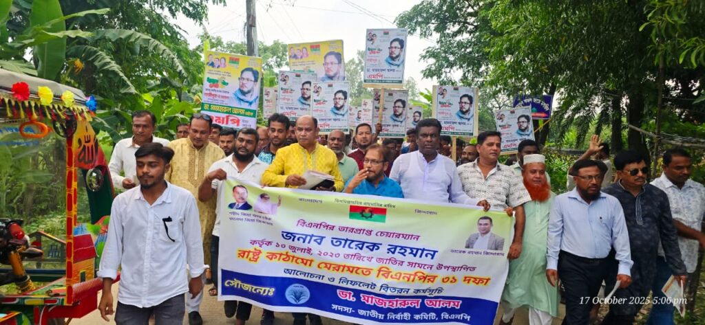 বিএনপির ভারপ্রাপ্ত চেয়ারম্যান তারেক রহমানের প্রণীত রাষ্ট্রকাঠামো মেরামতের ৩১ দফা কর্মসূচি জনগণের মাঝে ছড়িয়ে দিতে গাজীপুর মহানগরের বিভিন্ন এলাকায় ব্যাপক গণসংযোগ, উঠান বৈঠক এবং লিফলেট বিতরণ কর্মসূচি আয়োজন করা হয়।